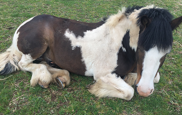 “My pony loves sleeping and rolling in the mud. The first picture shows how I found him in the morning, and the second shows him plaited up out jumping with the riding club. I have only owned Ted for nine months but he is already turning into a little showjumping star and we plan to affiliate next season.” — Sarah
