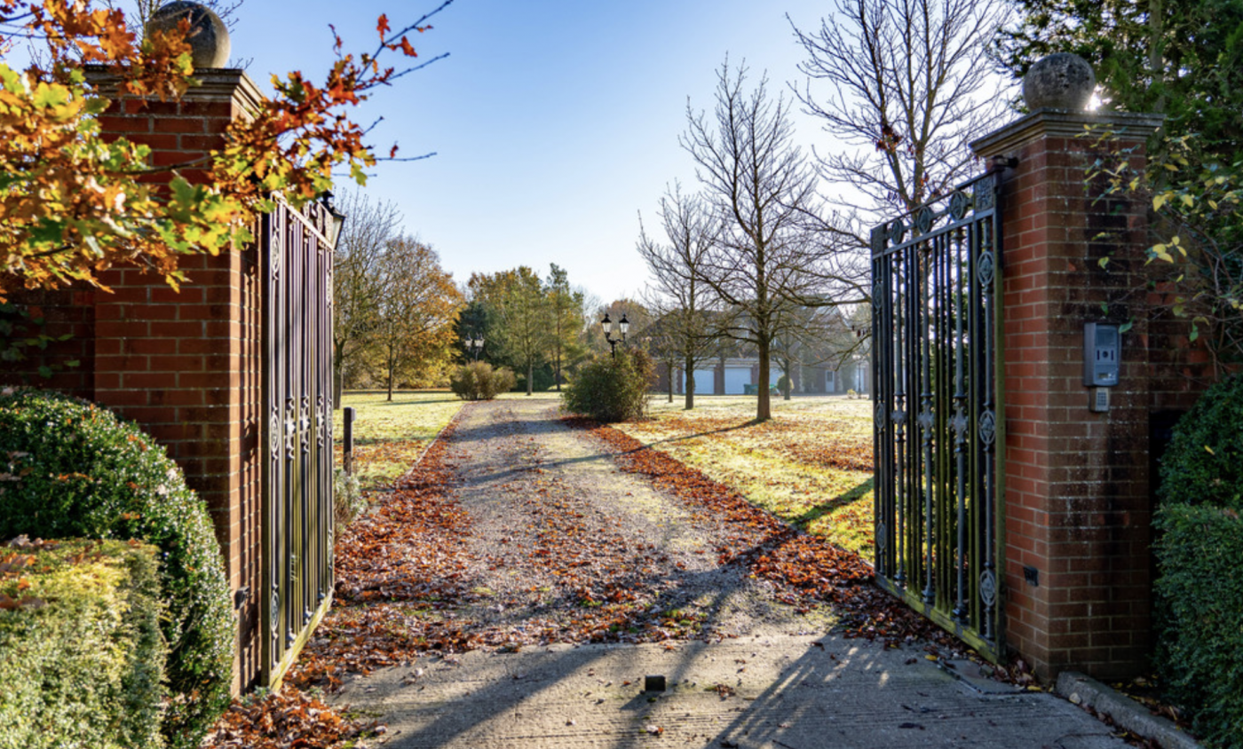 The property, which is set in 9.25 acres, is approached from the quiet country lane through remote controlled iron double gates which open onto a sweeping driveway leading across the parkland setting.