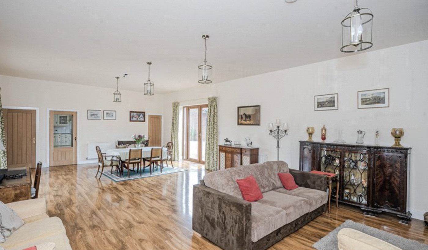 The property has separate owners’ and grooms’ accommodation, and a barn/tractor shed that could form further living accommodation, subject to any necessary consents.