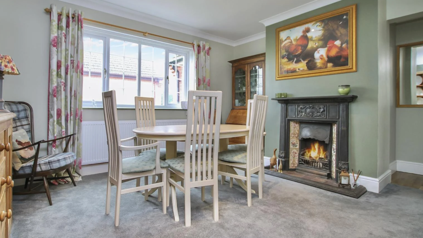 Inside the house, you’ll find a country kitchen diner and a separate dining room with an open fire. The lounge features a log burner and views over the countryside.