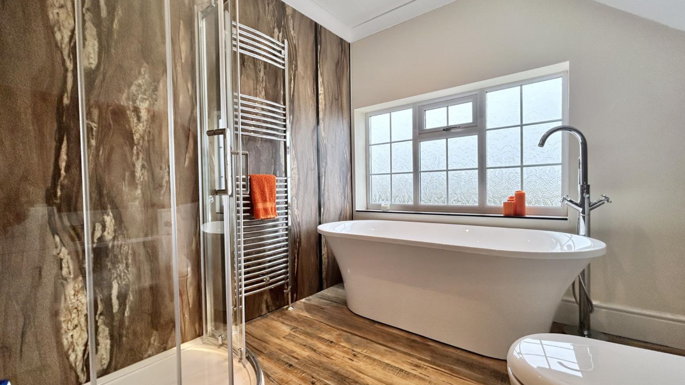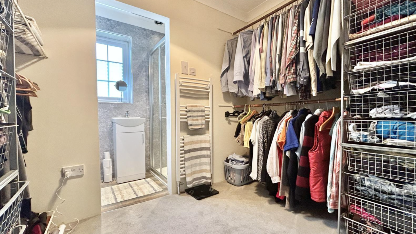 Upstairs, there are currently three bedrooms. The principal bedroom suite includes a dressing room and ensuite bathroom, which used to be a fourth bedroom and could be reinstated.
