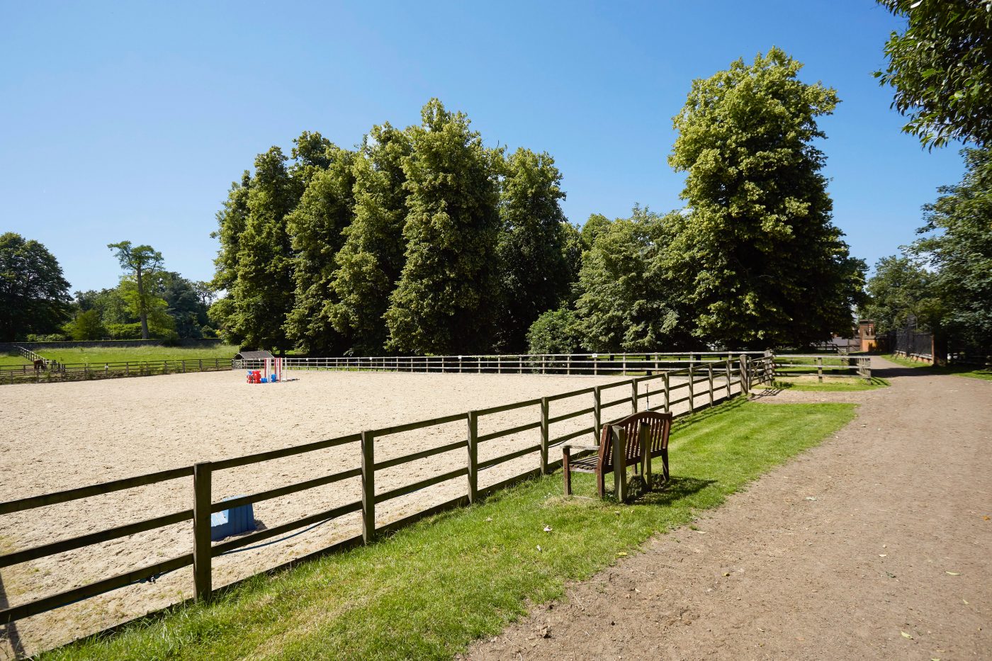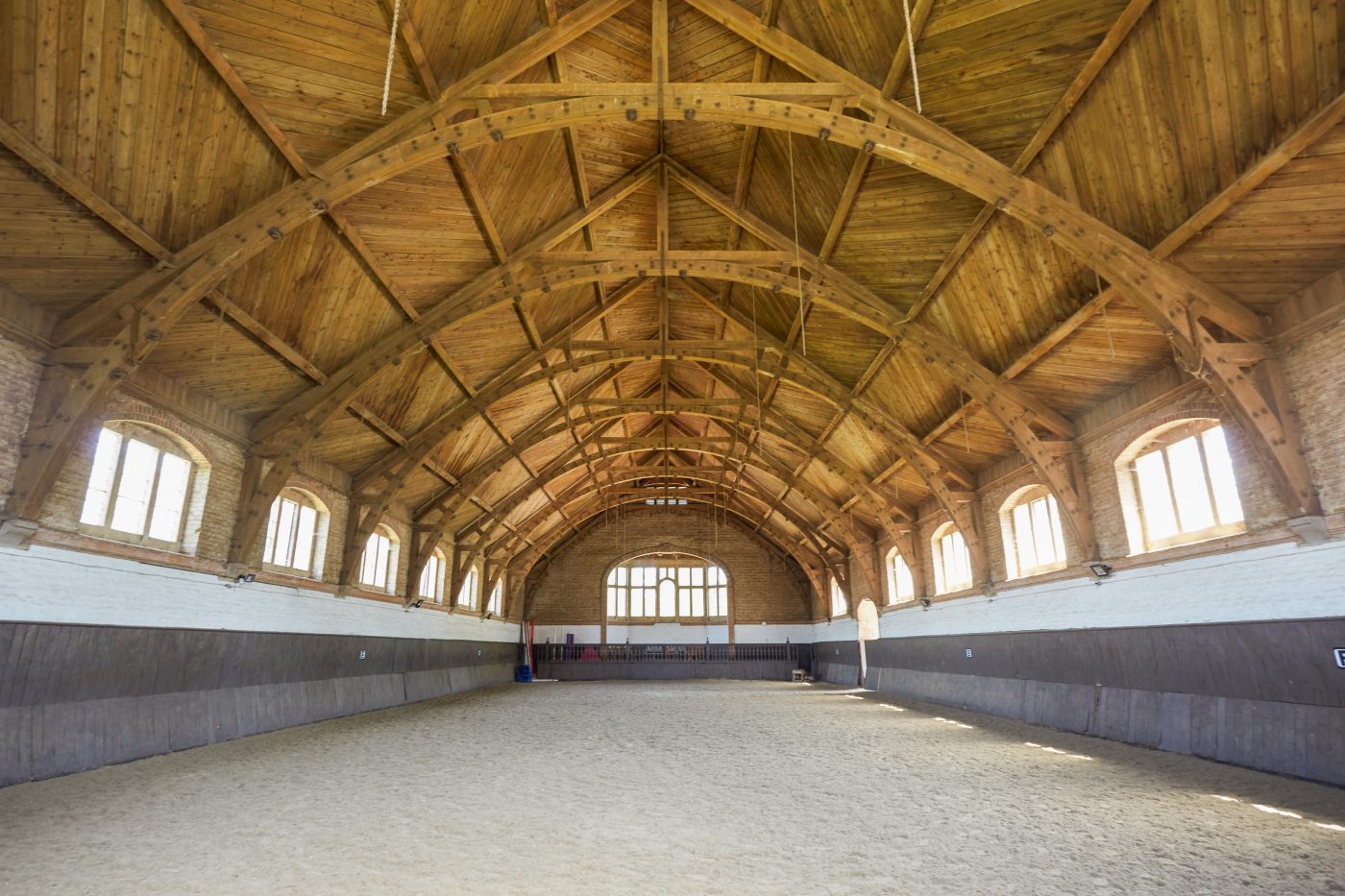 … and this 15x35m indoor school which has been built in a beautiful Grade II listed building dating back to 1881. It has a spectator viewing area and a wax fibre surface.