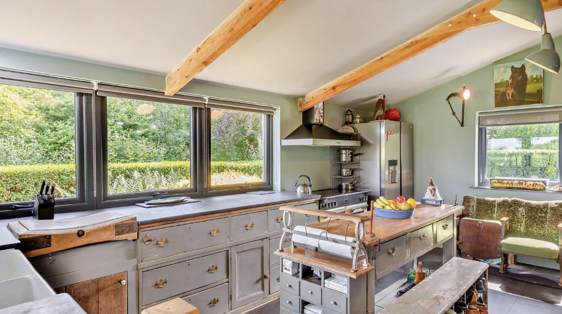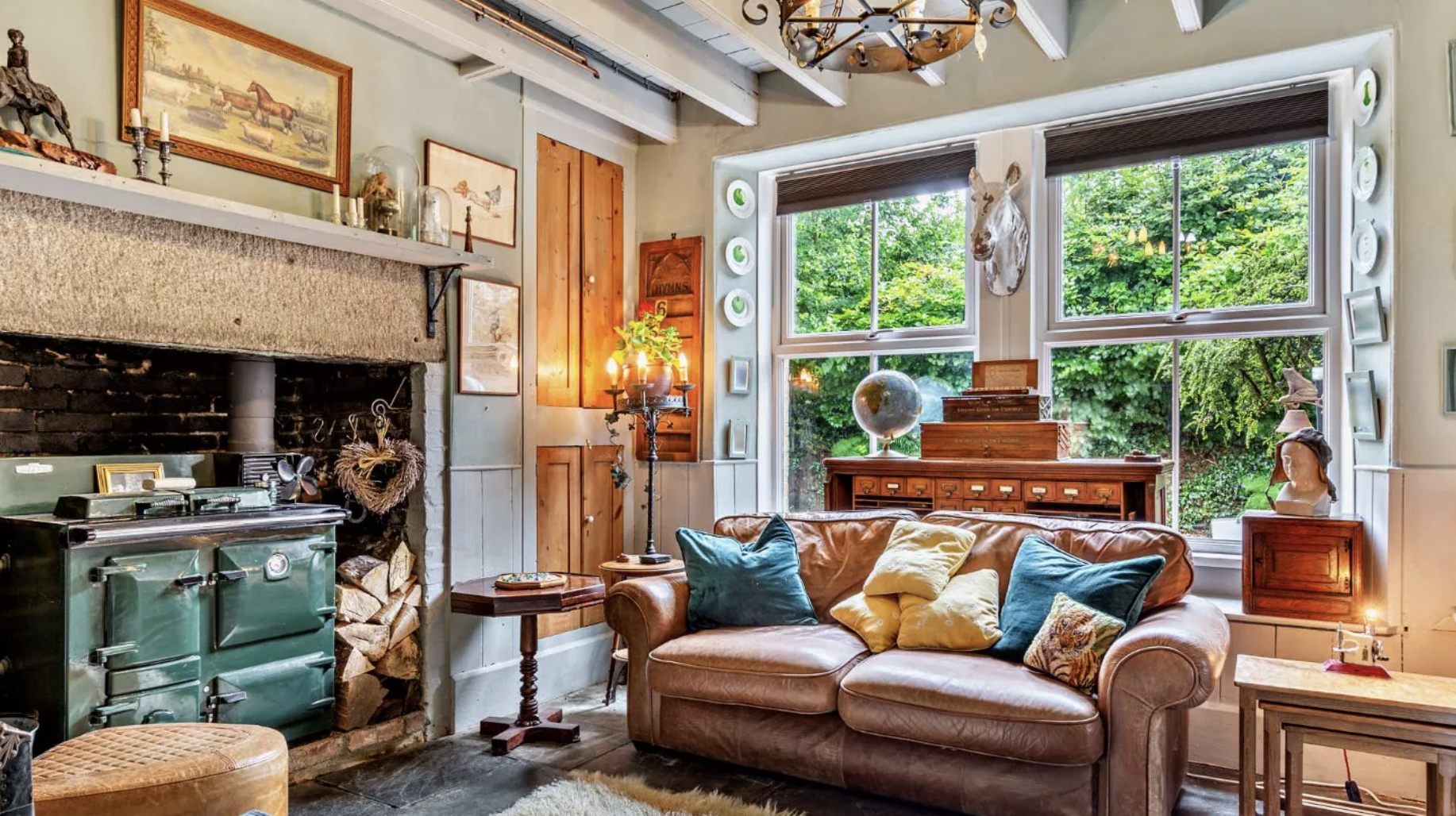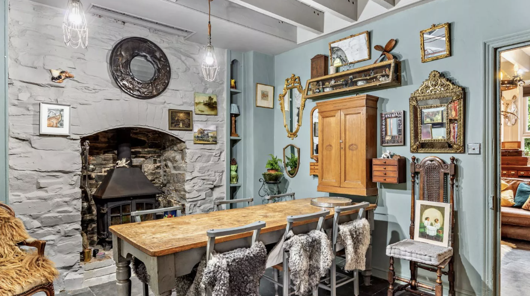 Inside the main house, the ground floor has three reception rooms including a sitting room with a mini range cooker fitted to its fireplace and two large windows. There is also a dining room with a woodburning stove and an office/fourth bedroom.