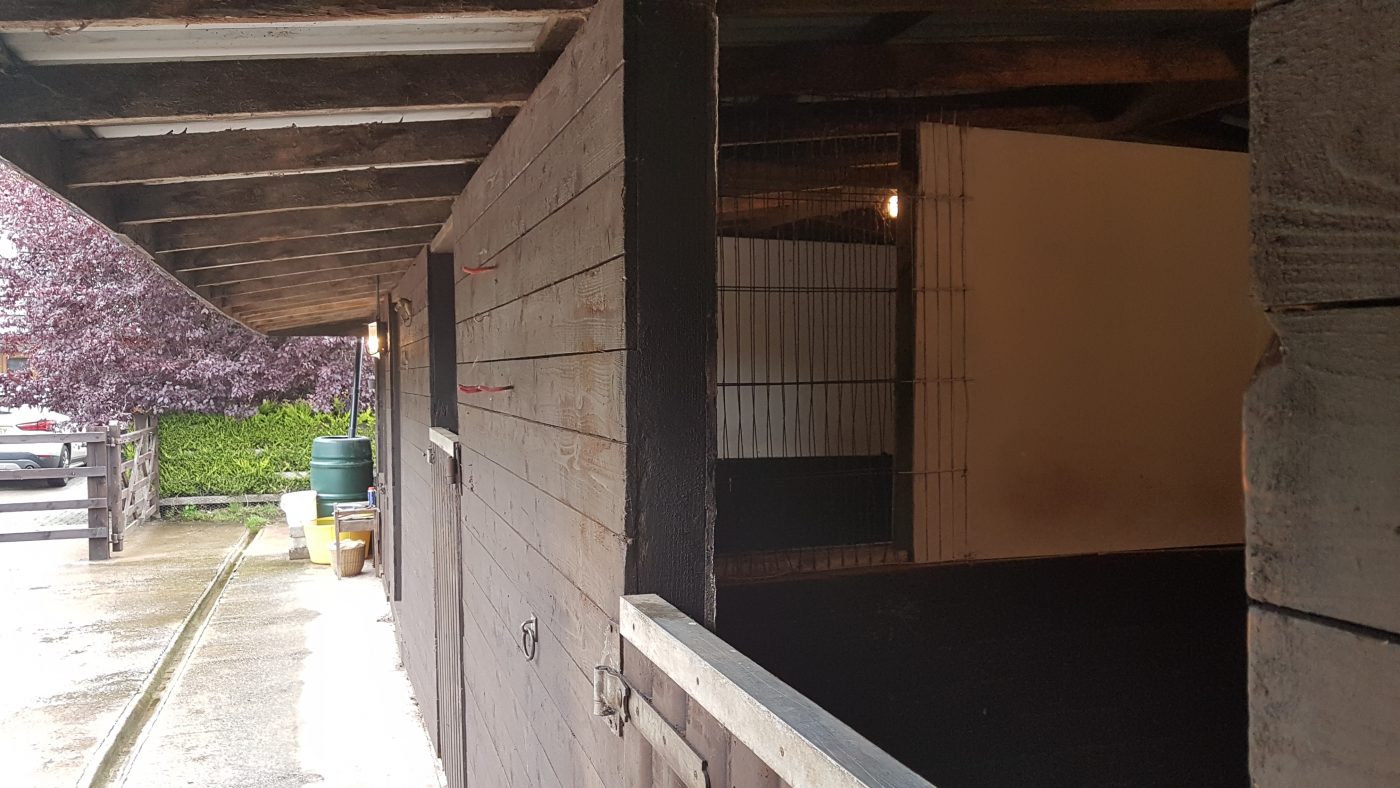 There is an L-shaped stable block with two pony stables and three bigger loose boxes. There is also a tack room.