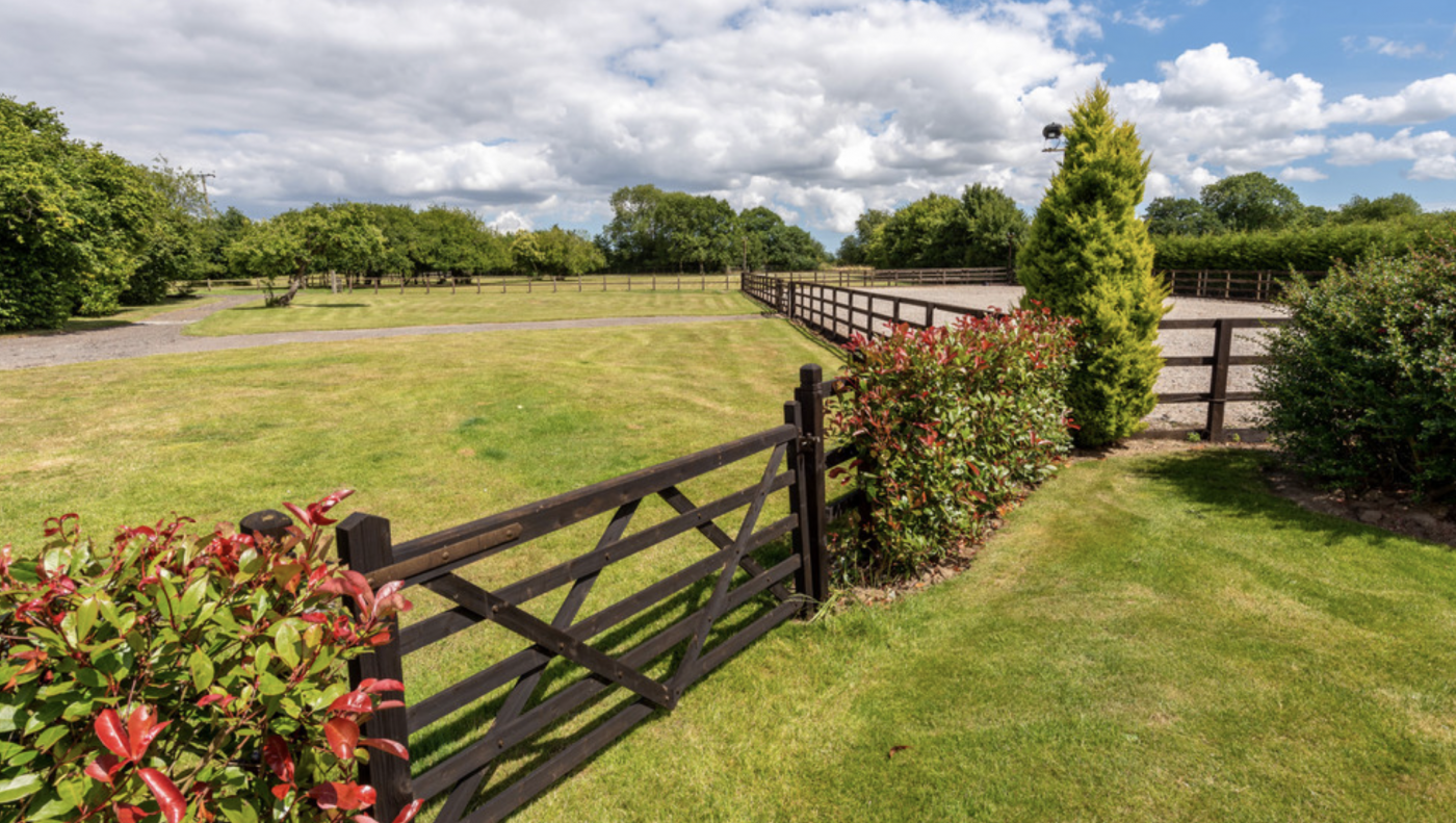 There is an enclosed floodlit sand and fibre 20x45m manège and two large fenced grazing paddocks. In addition to the equestrian facilities, there is also a wooded area.