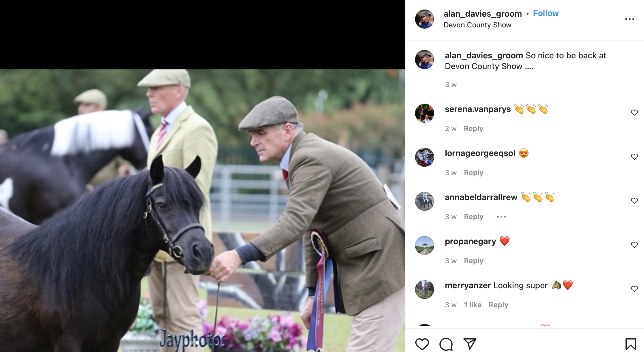 When not looking after Charlotte Dujardin and Carl Hester’s top dressage horses, Alan Davies can be found showing his Shetlands