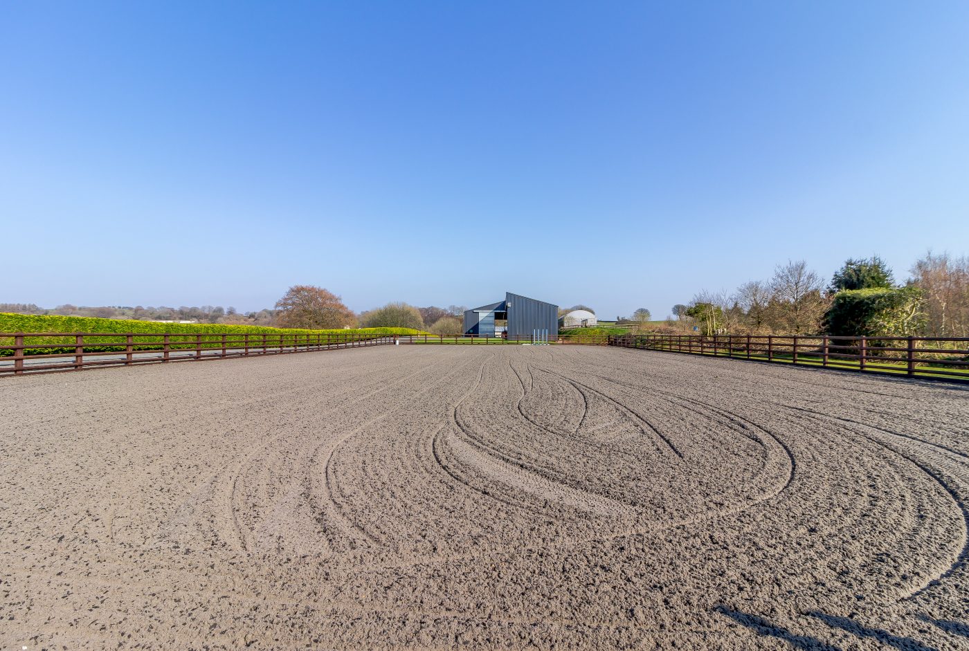 One of the main features is this 25x54m outdoor school, which is enclosed by post and rail. It is floodlit and has a rubber and silica sand surface.