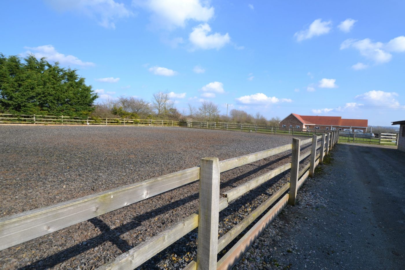 Opposite the main stable block is the 30x40m outdoor arena with post-and-rail surround and silica sand and rubber surface.