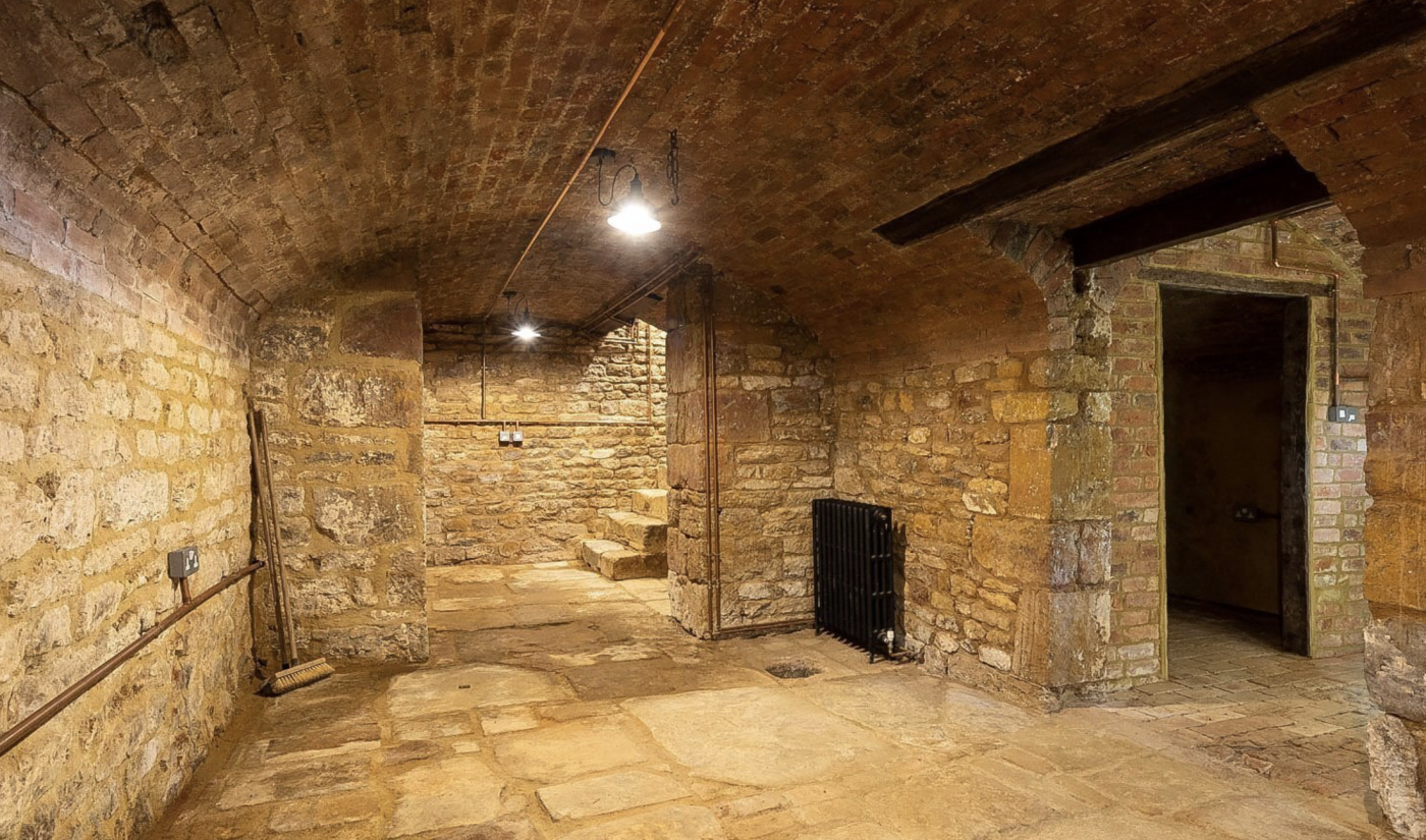 Former traditional barns have been converted and provide a vaulted office, dining and games room, with all three having French doors opening into the courtyard garden. A door off the reception hall has stone steps leading down to a vaulted cellar.
