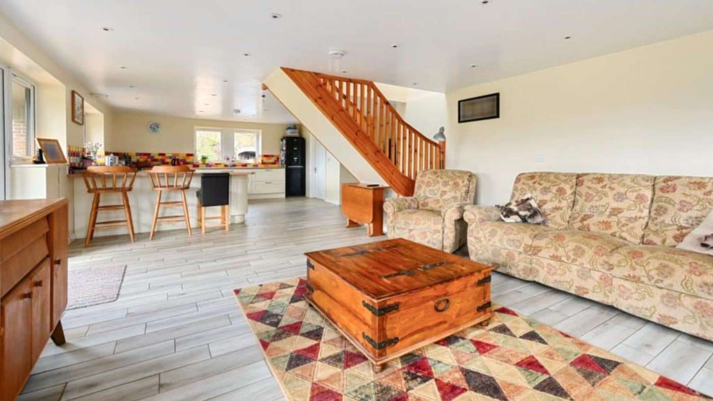 There are two ground-floor bedrooms with a shower room, plus a further bedroom and family bathroom next to the conservatory.