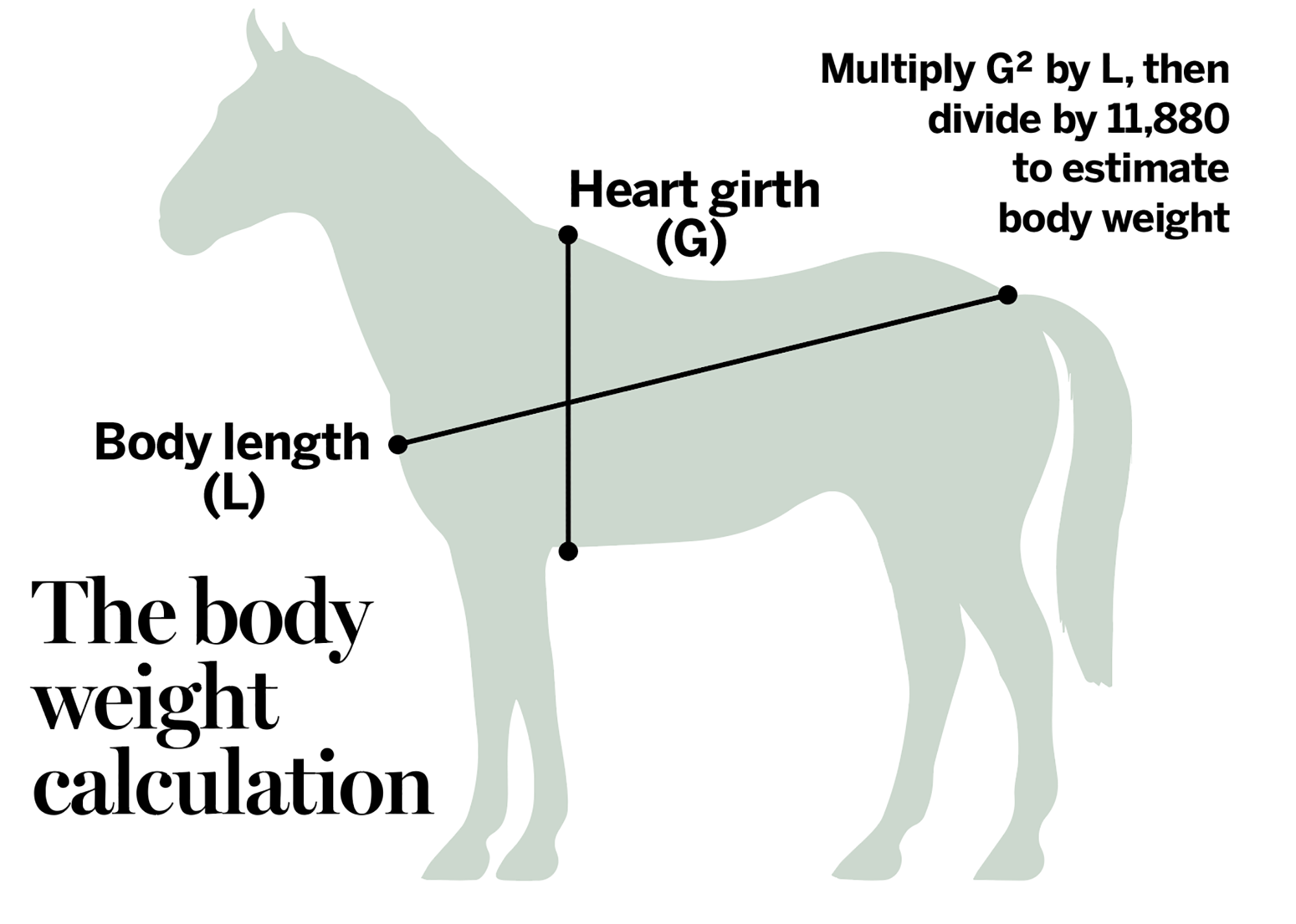 Although not exact, it provides a useful estimate for monitoring trends over time. Fluctuations in weight, particularly when a horse is on box rest for an extensive period of time, should not be too concerning as muscle mass decreases and posture changes also result in slight changes with your measurements.