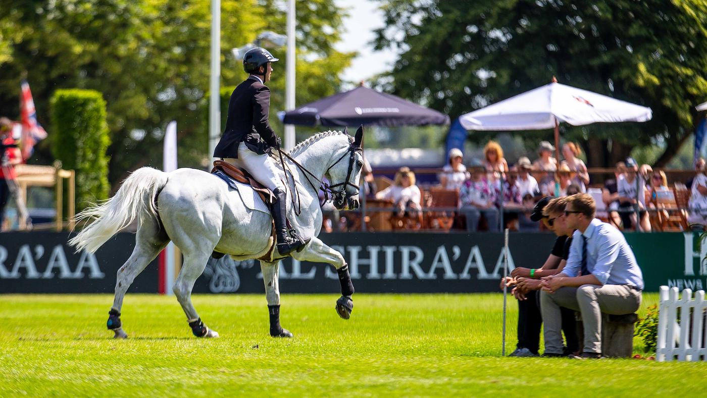 Andrew Kocher riding Navalo De Poheton in the 2018 Hickstead Derby.
