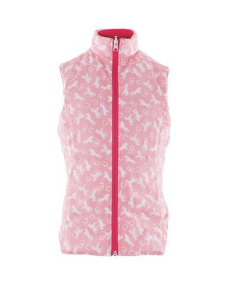 The childrens’ gilet — available in bright pink or blue — is reversible. The lining of the pink garment features a snazzy pony and horseshoe print and is designed to “look pretty while also being extremely practical”.