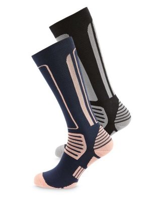 The riding socks, which come in pink and black or grey and black, feature mesh panels, an elasticated arch and a reinforced heel and toe.