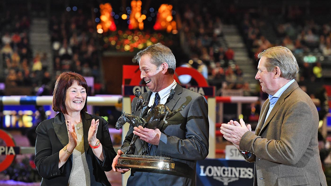 The award is given annually at Olympia by Clare and John Whitaker to recognise a contributor who has delivered greatly to the sport of showjumping and past recipients include David Broome, Bob Ellis and Nick Skelton himself.