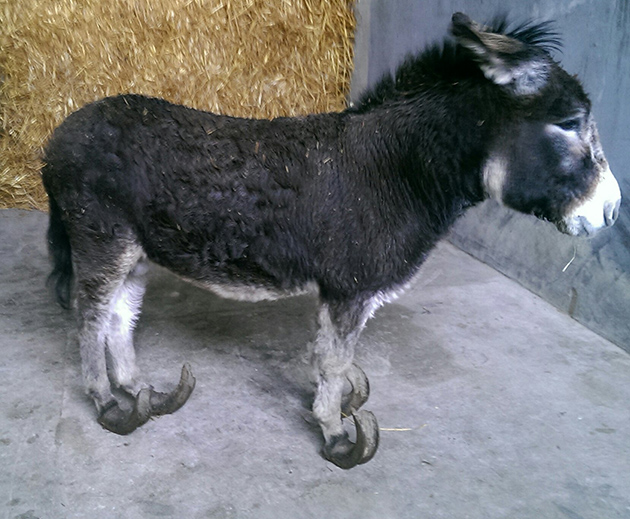 “The donkey was in considerable pain and discomfort when I found him. To alleviate the pain in his hooves, he was shifting his weight about and walking appeared very uncomfortable.”