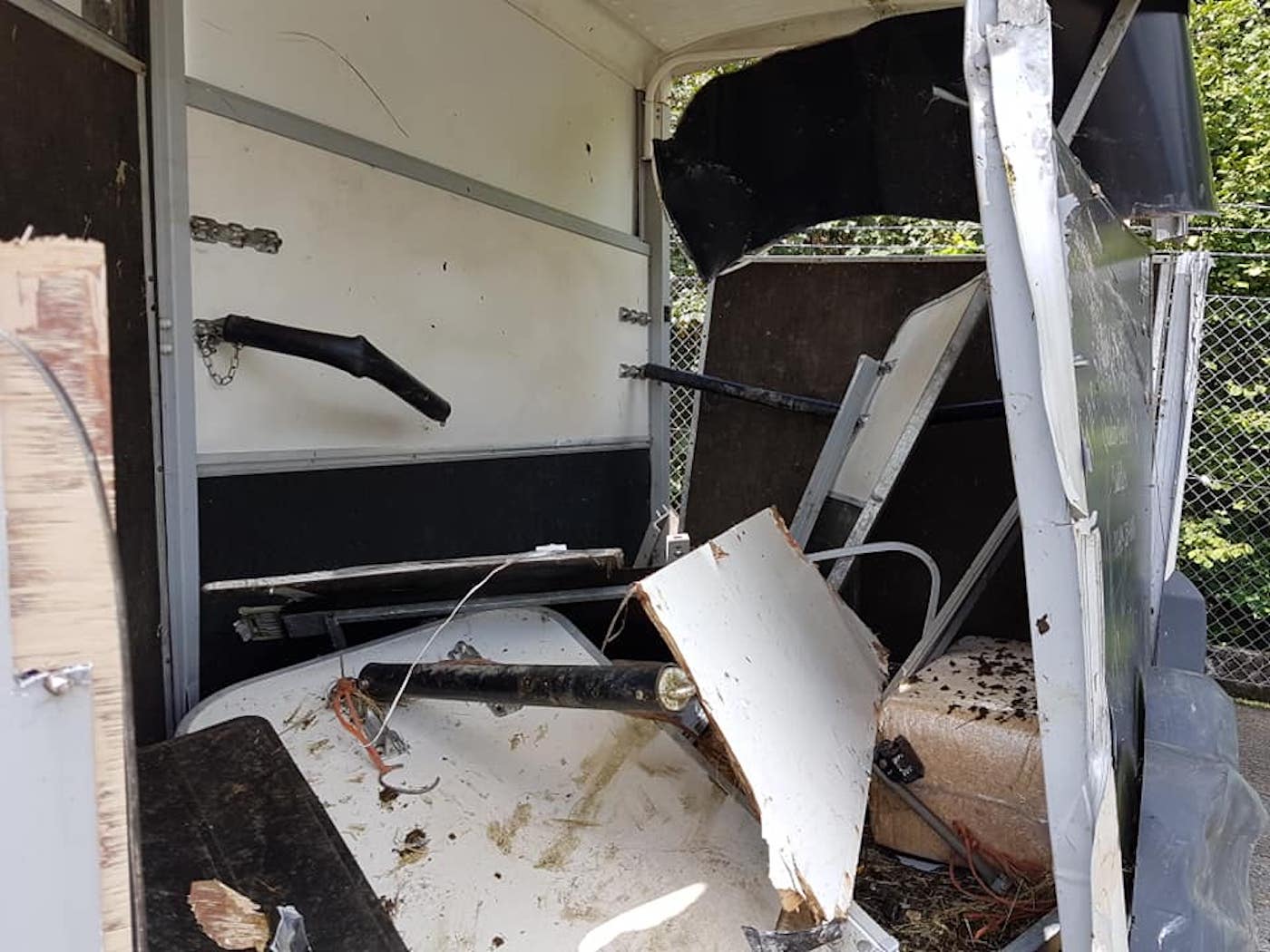 “His legs and debris were flying everywhere. He pulled himself out from under the trailer and went over the top of me,” she said. “Gary caught him and we noticed the haynet was completely wrapped around his front legs and the emergency bungee was still attached to part of the trailer that had come away. We managed to cut him free and Sabi walked away so calmy – It was like everything was on our side.