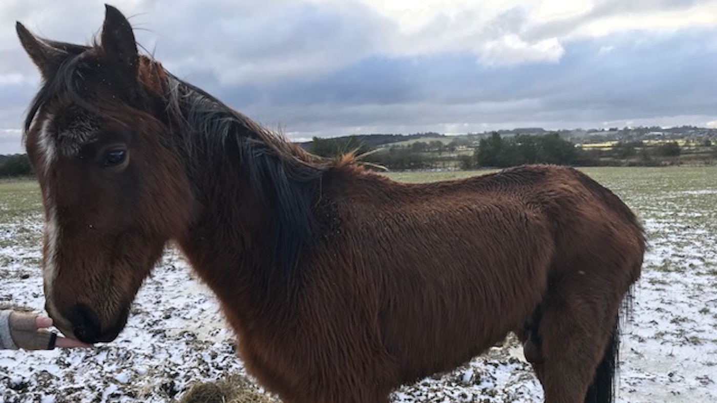 “All his ribs were visible and his spine and hip bone were prominent,” she said. “He had no access to water; all he did have was a small amount of haylage on the floor. There was a fresh bale of hay by the gate, but the horses didn’t have access to it and it was still in its grey wrapper.”