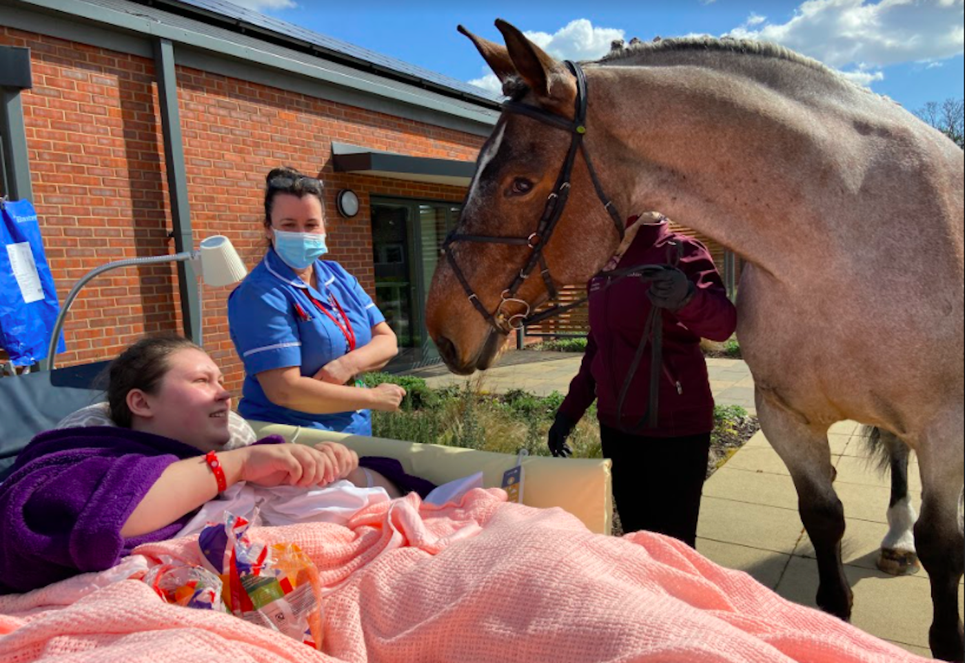 Lucy Watts MBE had a special visitor in the form of 17hh mare Edwina, also known as Eddie, at Fair Havens Hospice, Southend-on-Sea, on Easter Monday (5 April).