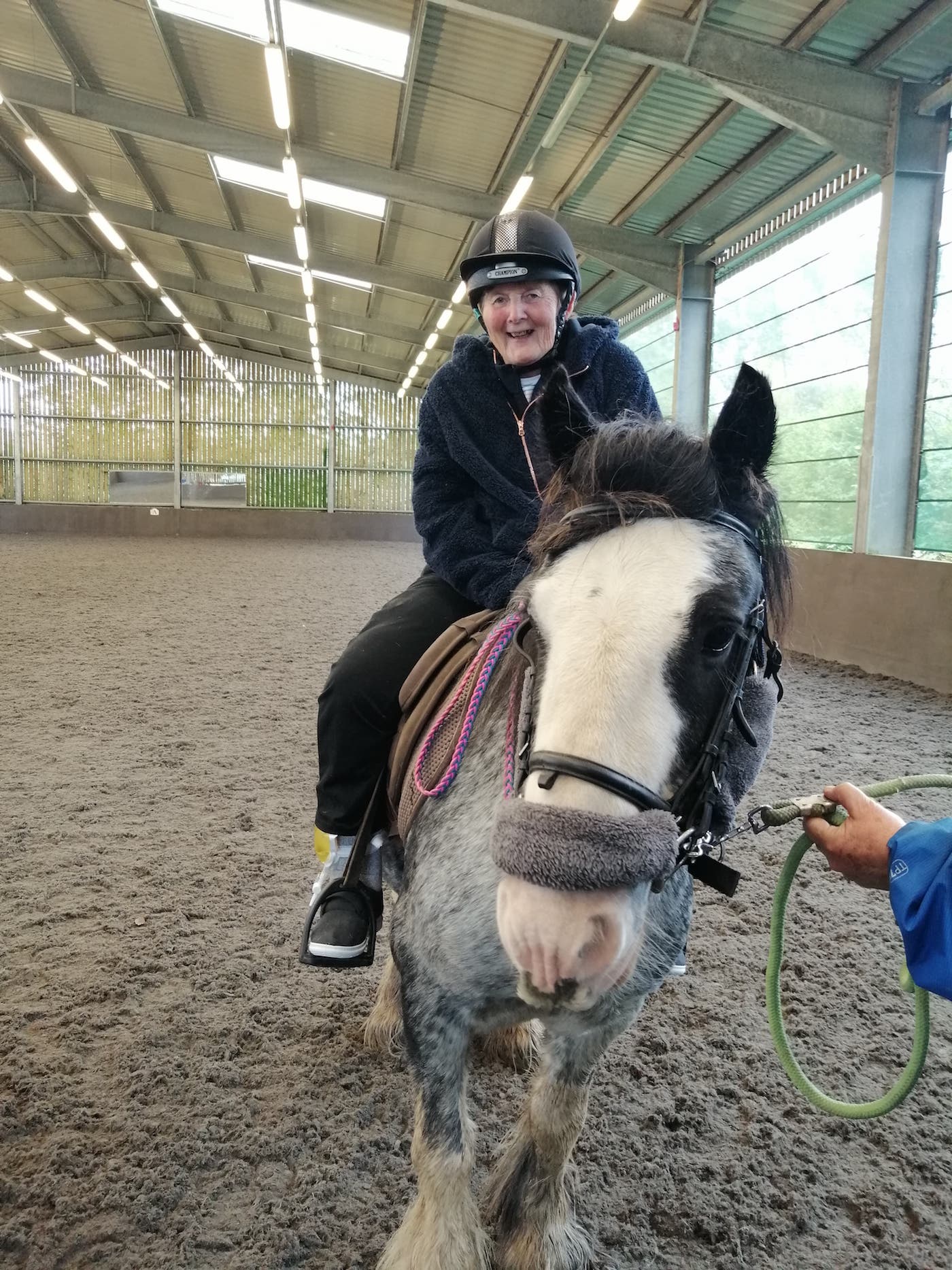 Alvina has been attending a local riding club at an equine college near Camarthen, where she has been able to use their hoist to get her back in the saddle.