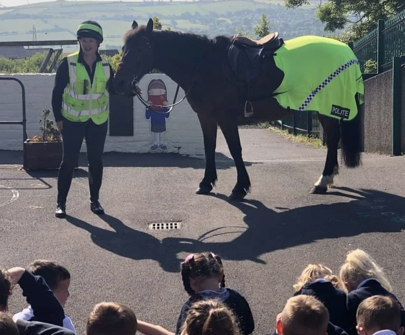 It’s not unusual to see a horse in the school – less common when it’s the primary school variety, with a crowd of agog young children.