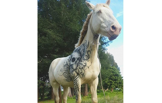 New Zealand airbrush artist Benjamin Lloyd has had plenty of requests from horse owners after publishing a pic of a “tattooed” cremello on social media.