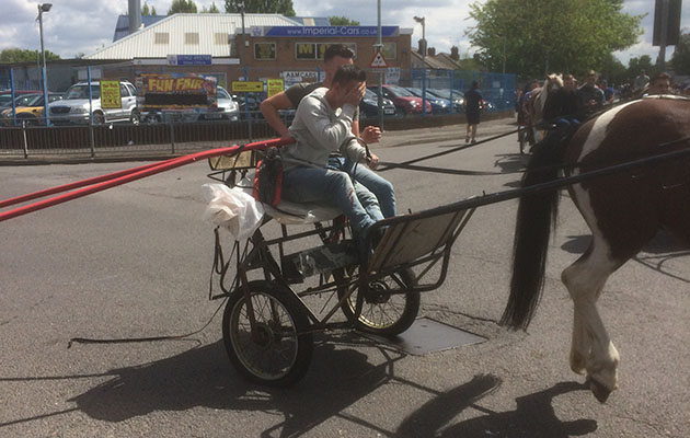 “When I arrived, the men with the horse had already left, dragging the trap away with them. Witnesses provided photos of two men taking off the trap and leaving the horse in the road.
