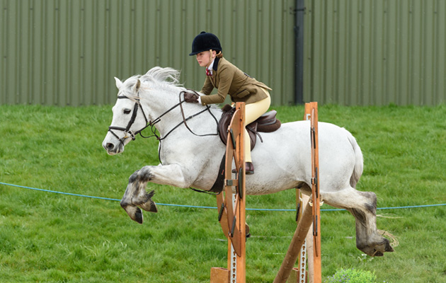 Mirah Hero (owned by Angela Pallett and ridden by Gemma Pallett) in the British Show Pony Society mountain & moorland 143cm working hunter pony of the year.