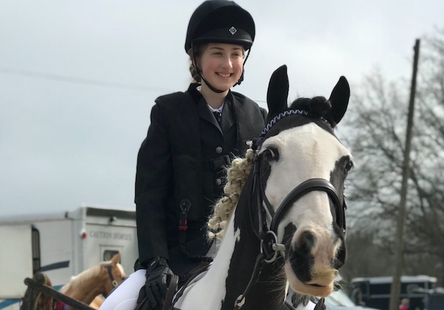 “At five months I started trotting and I recently had my first canter — it was great to be doing something with a bit of adrenalin again,” the West Sussex GCSE student said. “I’ve also been out to Felbridge [showground] for a dressage competition — Sally isn’t really a dressage horse but it was so nice to get back out, put the horse in the trailer, wear white jodhs and do all that stuff again.”