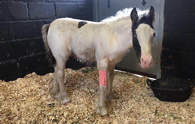“He’s a very lucky little foal — being that young his bones are soft, which is probably the only reason he survived without more damage.”