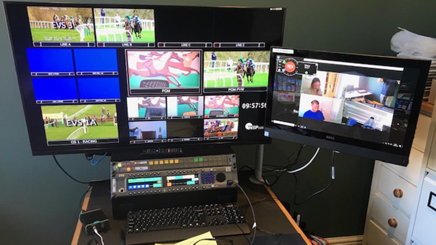 The team will be based at their homes, as will the direction and production team for the show – using innovative technology and adhering to social distancing guidelines (pictured, below). Commentator Richard Hoiles will be based off-site in a commentary booth.