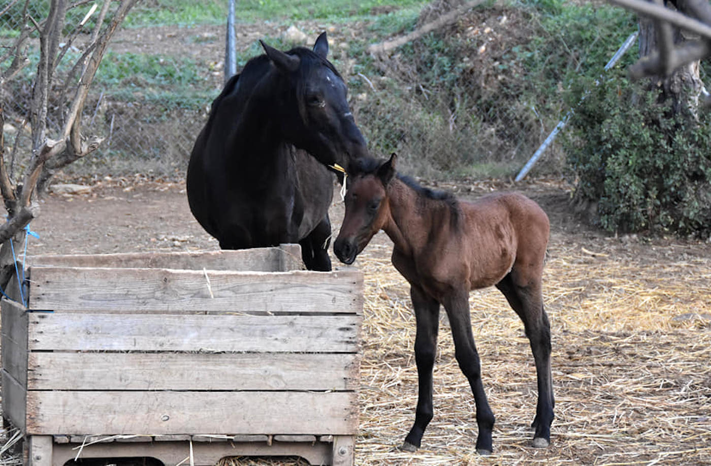 After Lucky was weaned, ARCH began their search for a home for Moni, who needed to be brought back into work and to regain fitness. She was sent to the Iglesias stables, where the twins started to ride her.