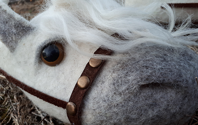 The unique shoes from Marienwool come complete with flowing forelocks and studded headcollars.
