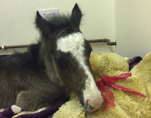 The foal, Spirit, has defied the odds and survived thanks to quick-thinking owner Elaine McGowan and generous yard owner Carolyn Steel.
