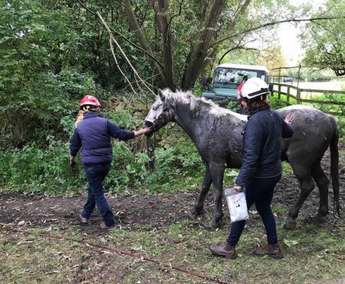They worked with two vets from Hampden Equine as well as a number of other helpers to free the 14.2hh, who has made a full and quick recovery from his ordeal.