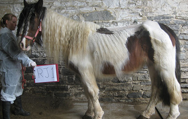 May was emaciated, suffering from a heavy worm burden and infested with leg mites.