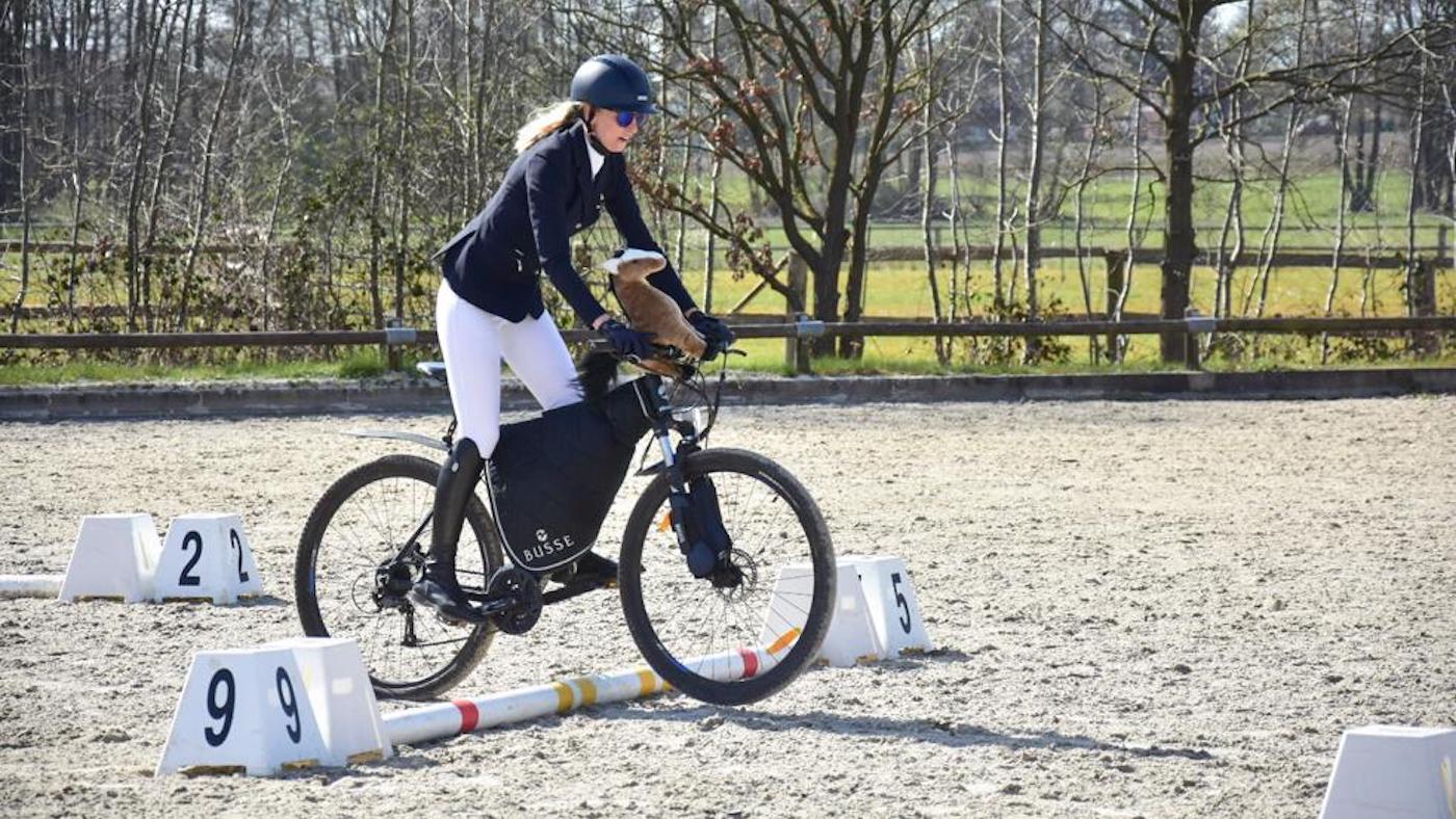 Entrants’ dressage tests, filmed in advance, were scored, after which riders took part in a series of challenges including apple-bobbing and putting duvets in cases, on cross-country day, finishing with a round of “showjumping”, on bicycles, on Sunday.