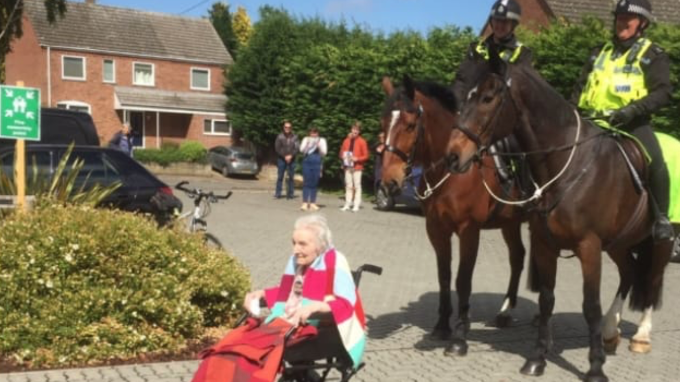 A lifelong horse lover celebrated her 104th birthday with ceremony when she received a surprise visit from mounted police.