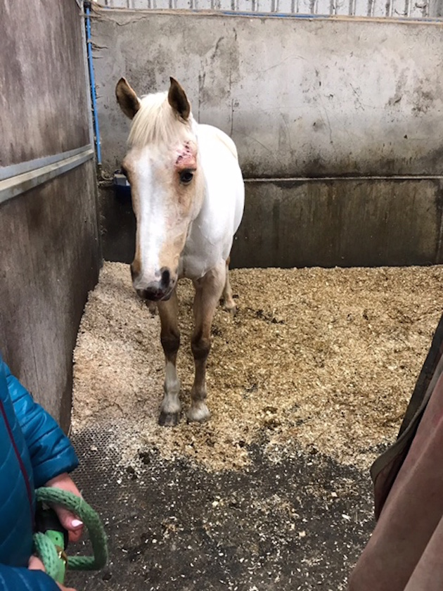 At about 6.15am the Irish palomino was hit by a car which was written off in the accident, and left her with her cuts and bruising to her head.