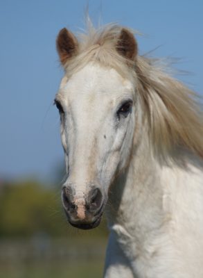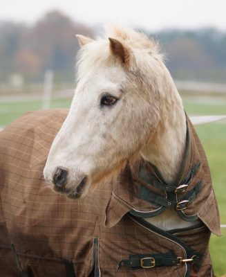 The pony was extremely thin with a severe worm burden and was terrified of people, but with careful handling he overcame his fears and grew to be friendly and loving.