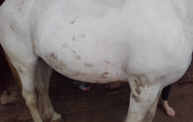 “We couldn’t touch her right side,” Kimberly said. “She’s lame on her left hind – we think from trying to defend herself – she’s been beaten with sticks and branches on her belly and hindquarters. It’s just horrific.”