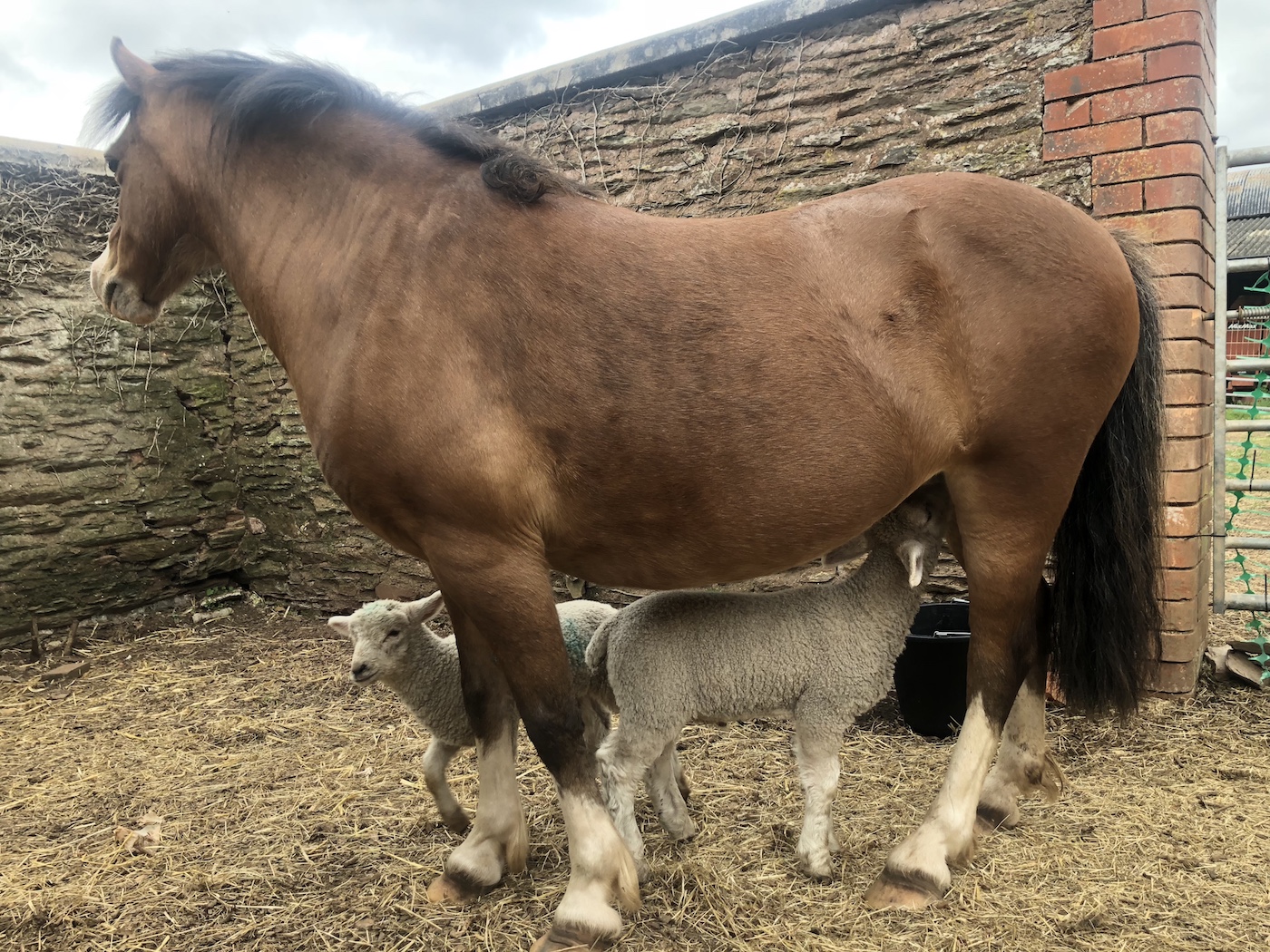 What do you get if you take three orphaned lambs and one friendly mare? A new and unusual arrangement, in one Somerset family’s case.