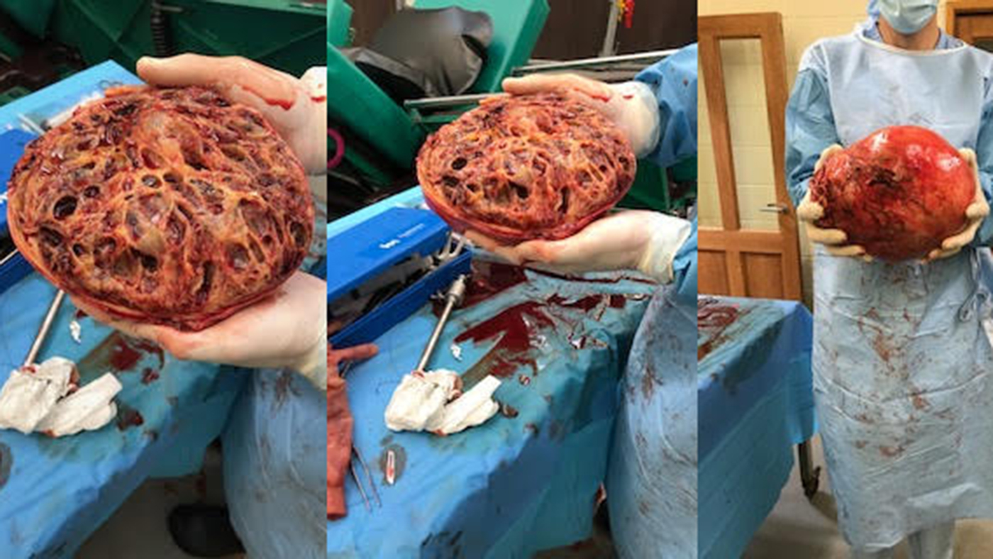 The vets had intended to perform keyhole surgery but realised this was not an option when they saw the size of the tumour, which weighed abou 11lb, so Nellie underwent a major operation to remove it last Monday (22 June).