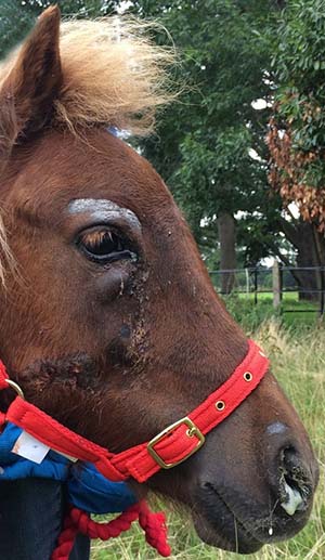 The piebald pony had abscesses bursting on her face and throat from the strangles as well as suffering from a severe case of ringworm.