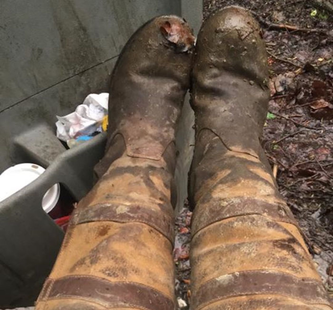 A quick sock check showed not a drop of water had penetrated the Mark Todd country boots, which Joely’s ex-boyfriend had bought for her birthday in June 2018.