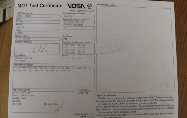 When the customer took the vehicle for an MoT nearly a year later, he found the history actually indicated a mileage of at least 125,000, and the MOT certificate he had been given had been altered.