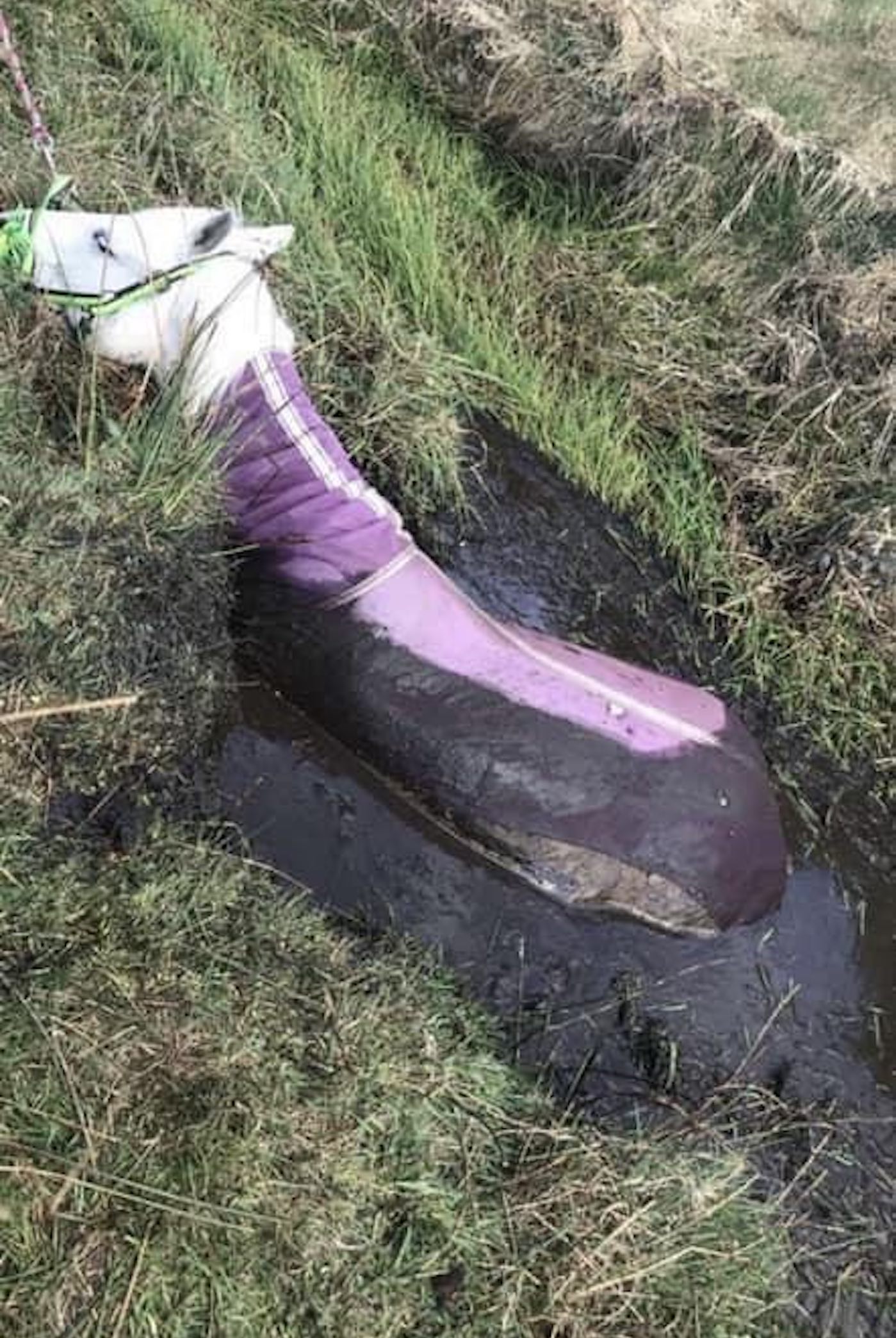 Kayleigh Hughes’ seven-year-old Connemara gelding Finn became stuck in a ditch that borders his field in County Down, Northern Ireland, on 16 April