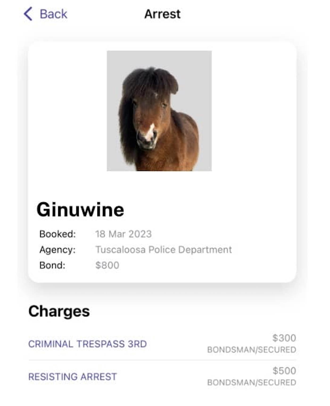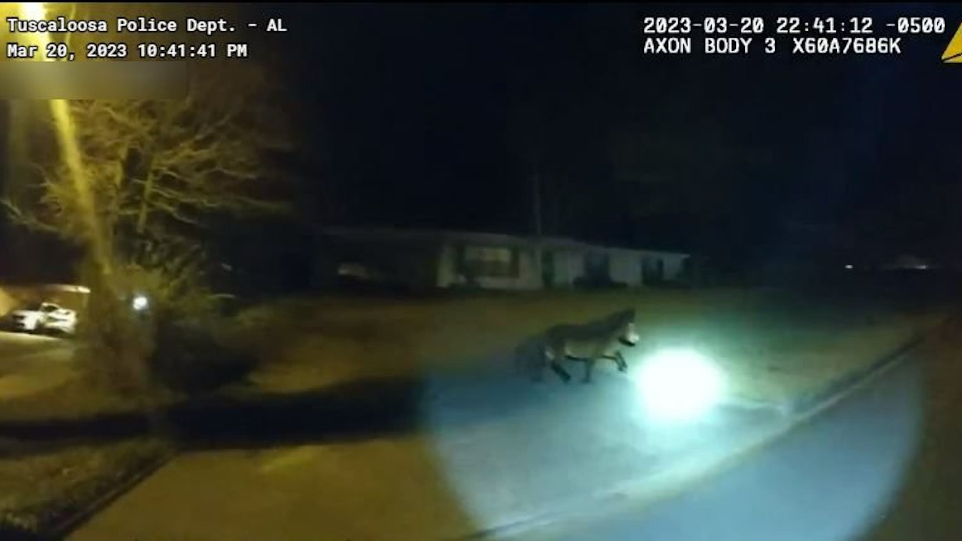 And so police officers in Tuscaloosa, Alabama, US, found on Monday night (20 March) as this pocket-rocket wanted equine led them on a two-hour late-night “low-speed foot pursuit” as he resisted arrest in a residential neighbourhood.