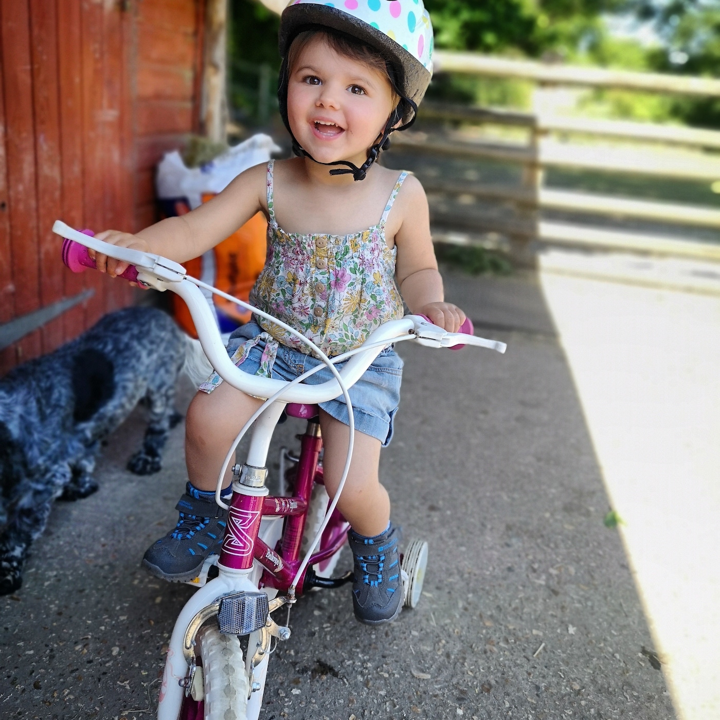 This time “Ety” is taking on a different riding challenge, learning to pedal her new bicycle to raise money to help her own animals through lockdown.