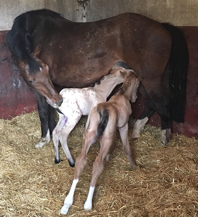 A stud owner was the recipient of an unexpected equine bonus when her mare gave birth to surprise twin foals last Saturday (14 April).